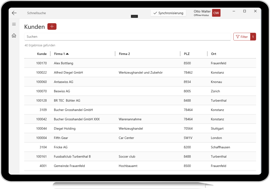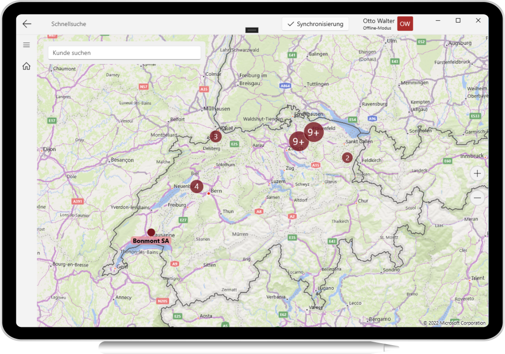 Anwendung in den aktuellsten Konzepten von Technik und Design für Windows zur Verwaltung von Kunden, Partnern, Besuchen, Standorten und mehr.