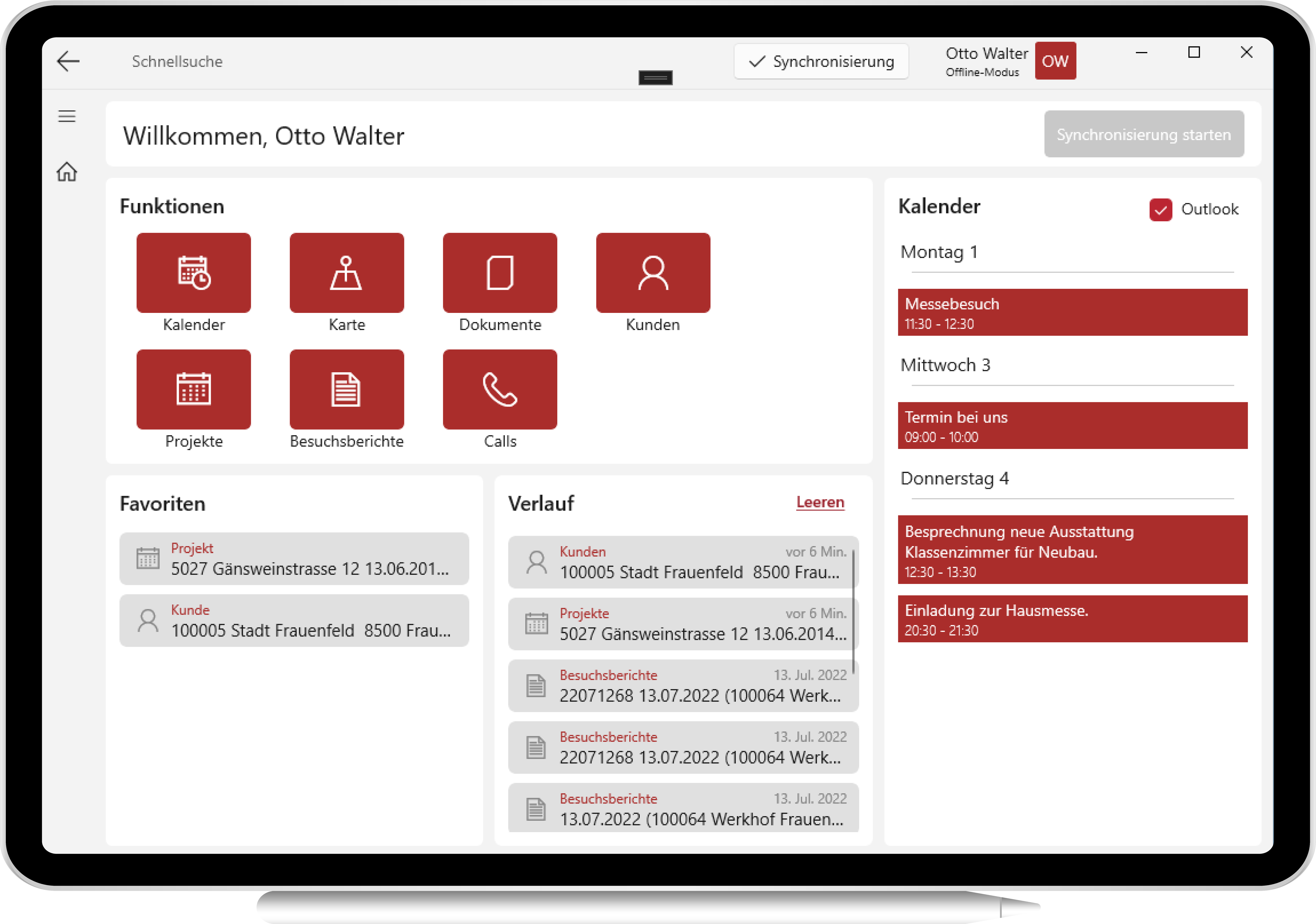 Die wichtigsten Funktionen für die Beziehung zu einem Kunden sind verfügbar und können über die App leicht aufgerufen und navigiert werden