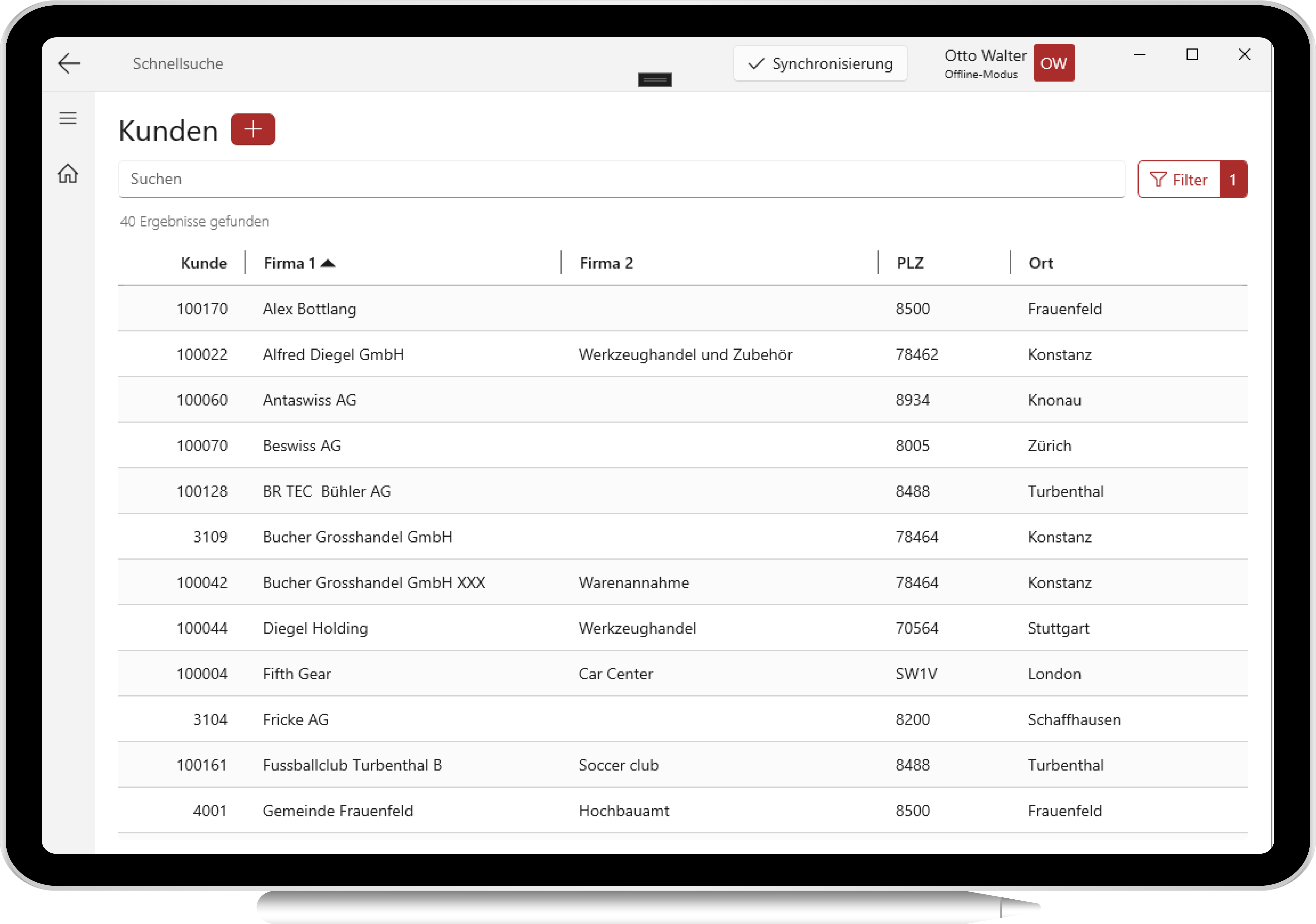Das Modul bietet eine Liste Ihrer Kunden mit Sync-Status und ermöglicht das Filtern nach verschiedenen Kriterien. Sie können auch Details zu jedem Kunden anzeigen. Die Funktion erleichtert die Verwaltung Ihrer Kunden und hilft Ihnen, eine schnelle Übersicht über Ihre Kundenbeziehungen zu erhalten.