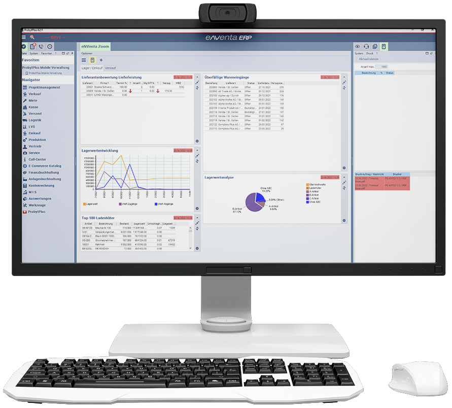 Die volle Integration in die Warenwirtschaft von eNVenta ERP macht Schnittstellen obsolet, es entsteht kein Zeitversatz und alle Informationen liegen in Echtzeit vor. So können sowohl der Telefonverkäufer als auch der Mitarbeiter an der Theke ihren Kunden genau sagen, ob der gewünschte Artikel in der gewünschten Menge auf Lager ist.